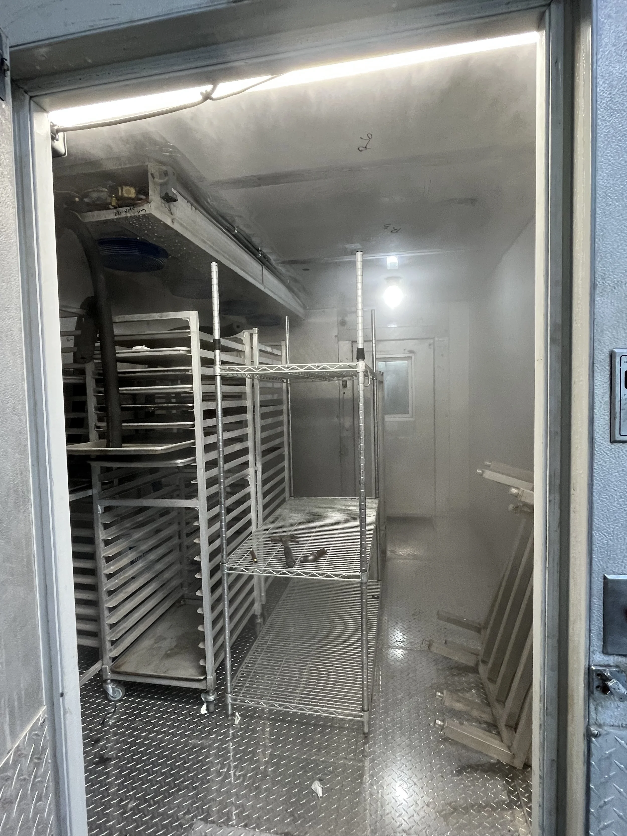 Our 4,800 square foot facility offers two distinct levels: a bright, naturally-lit commercial kitchen on the top floor with access to a loading dock, and a lower level with flexible storage, lockers, laundry, and multi-use space.